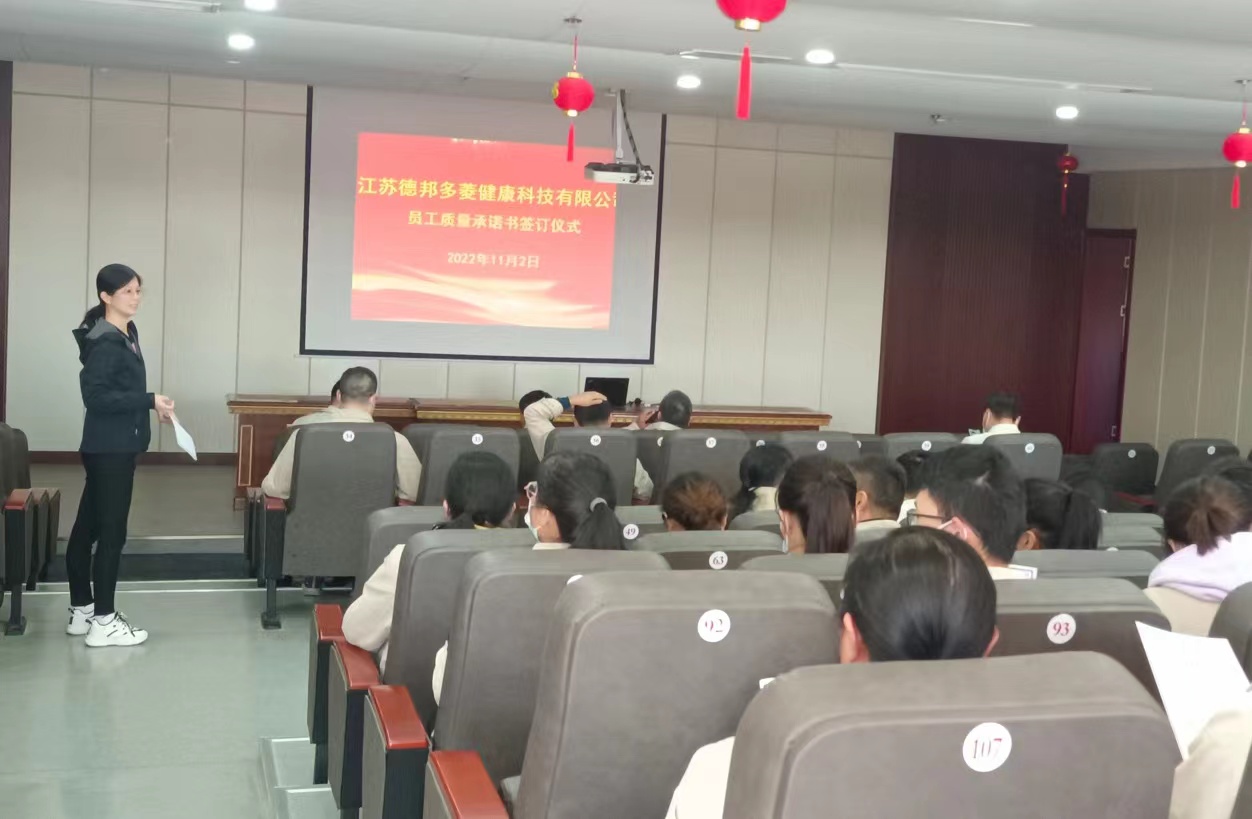 2022112日下午,德邦多菱公司組織全體員工在行政樓二樓報告廳舉行《質量承諾書》簽訂儀式。大家認真閱讀承諾書內容,保證在工作過程中嚴格按照公司相關質量管理規定從事生產工作,嚴格執行“二遵守”、“三主動”、“四堅持”原則。
