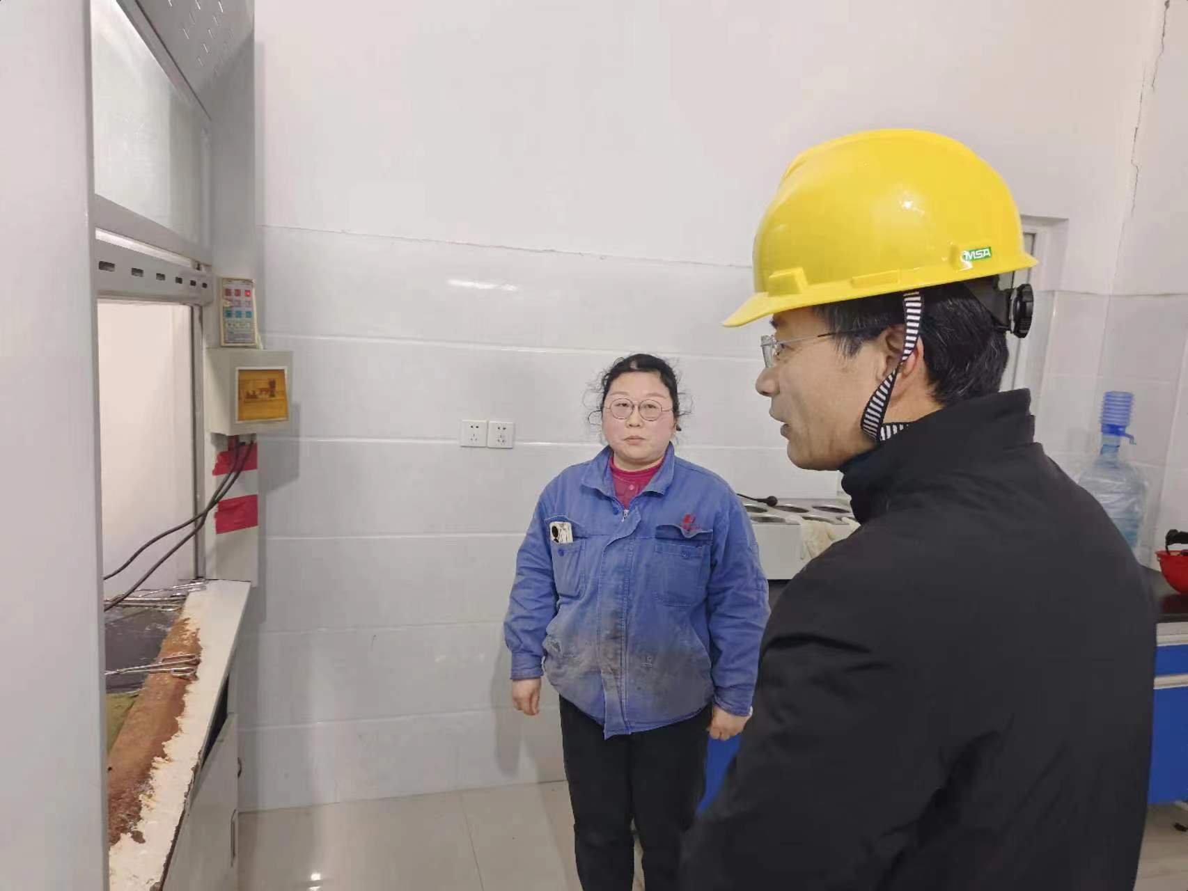 124日大年初三下午,淮南市市長張志強在市政府秘書長戴宜斌等同志的陪同下輕車簡從,在未事前通知企業的情況下,來到安徽德邦公司進行視察,并到中控化驗室看望了當班員工。